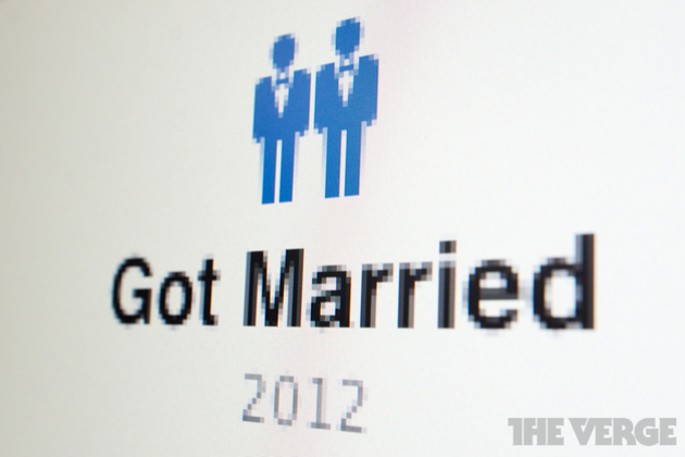 Facebook представила новую функцию Timeline, которая позволяет однополым парам декларировать на сайте свой замужний статус при помощи иконок, которые наилучшим образом отражают характер их отношений. Эта функция предлагается вместо стандартной иконки, изображающей жениха и невесту, которая используется для обычных пар.