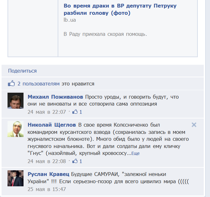 Но больше всего за настоящих мужчин обидно. Куда они подевались? Не даром Виссарион Белинский как-то справедливо подметил, что «мужчина с женоподобным характером есть самый ядовитый пасквиль на человека». В погоне за саморекламой, журналист предоставляет читателю скриншот-отчёт со словами, вырванными из какого-то контекста. Что предшествовало фразе? Загадка. И, видимо, по мнению автора – не суть. Ещё один плевок Шрайка против ветра – «Колесников назвал пользователей лошками».