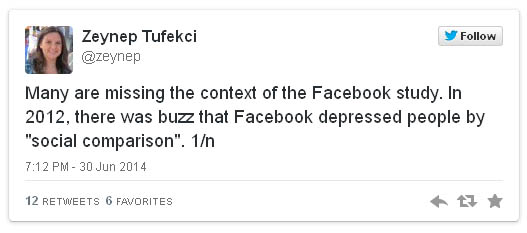 Пользователи Twitter также отметили, что эксперимент был проведён в тот момент, когда активно обсуждалось, что Facebook вгоняет пользователей в депрессию, сравнивая их с другими людьми.