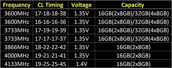 Наиболее высокопроизводительные DDR4 модули G.Skill Trident Z объёмом 8 Гбайт будут поставляться как двухканальные 16-Гбайт комплекты, тогда как решения с тактовыми частотами 3 733 МГц и ниже будут доступны в комплектах общим объёмом 32 Гбайт.