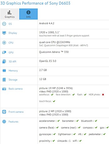 В тесте GFXBench был замечен ещё один новый смартфон Sony с индексом D6603.