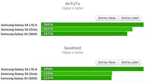 Понятное дело, Galaxy S4 на базе четырехъядерного Qualcomm Snapdragon 800 должен опережать модели этого смартфона на фундаменте восьмиядерного Samsung Exynos 5 Octa и четырехъядерного Qualcomm Snapdragon 600, а вот как именно, об этом расскажут бенчмарки AnTuTu Quadrant.