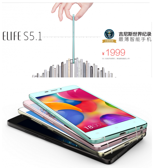 Gionee Elife S5.1 внесён в Книгу рекордов Гиннесса как самый тонкий из всех смартфонов