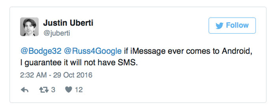 Google: даже если iMessage появится на Android, он не будет поддерживать SMS