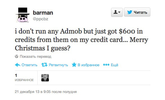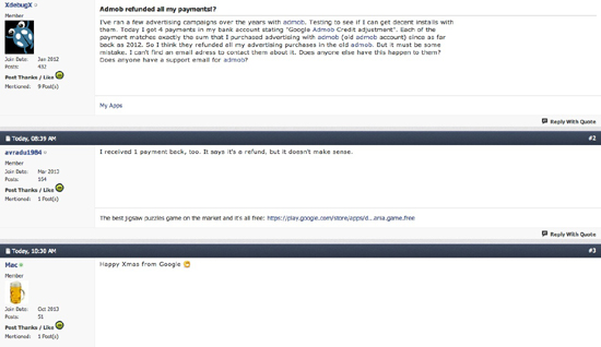 У подписчиков рекламного сервиса Google AdMob, позволяющего размещать рекламу в приложениях, произошло рождественское чудо. В связи с переходом на новую версию был запланирован возврат оставшихся на счету денег, однако что-то пошло не так, и некоторым клиентам вернулись и потраченные ранее средства (порой немалые).