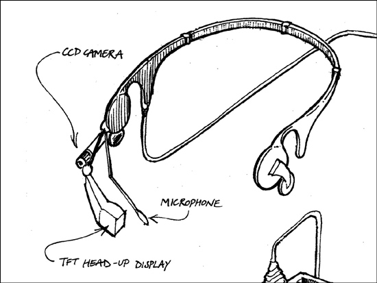 Проект назывался Halo и появился на свет в 2001 году, когда компания Google только-только начала продавать рекламу и наняла в качестве CEO Эрика Шмидта. Это была металлическая конструкция с небольшим дисплеем: надел на голову – и наслаждайся дополненной реальностью. Планировалось, что гаджет будет узнавать предметы окружающего мира, давать пользователю визуальные и голосовые подсказки, зачитывать входящие имейлы и т.д. Управлять Halo предполагалось с помощью голосовых команд, жестов, а также с маленького компьютера с тачскрином и джойстиком, который можно было засунуть в карман или надеть на руку, как часы. (Это, кстати, был не просто пульт, его можно было подключить к монитору и клавиатуре и использовать как миниатюрный компьютер.)