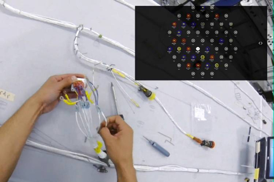 Компания Boeing разработала приложение для Google Glass, с помощью которого пользователь получает указания по сборке через дисплей очков. Сейчас сборщику достаточно назвать код провода — и на экране очков появляется макет с указанием соответствующего отверстия для его размещения. По словам Эдмана, число ошибок, ранее составлявшее 6 %, теперь свели практически к нулю. Кроме того, продолжительность сборки жгута сократили на 30 %. Сейчас разработчики Boeing поставили задачу увеличить число приложений для того, чтобы расширить область применения Google Glass.