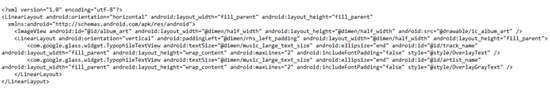 В файле Music_Card.xml найден код, отвечающий за отображение информации о воспроизводимой музыке: обложки, имени исполнителя, названия песни и альбома. Также добавлен значок радио, это может означать, что в Google Glass будет добавлена поддержка Google Play Music All Access.