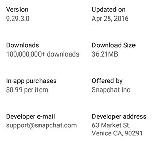 Если установлена последняя версия приложения, в магазине не будет отображаться никаких размеров файлов.