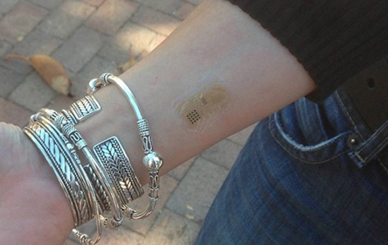 Электронная «татуировка» наносится на руку и состоит из крепления и гибкой электронной схемы с датчиком и антеннами. Регина Дуган сделала себя такую перед конференцией и уверяет, что если в будущем устройства получат приемники сигналов от татуировок, это решит проблему компьютерной безопасности и облегчит авторизацию.