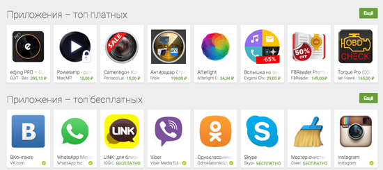 Google прячет новый топ приложений за секретными ссылками