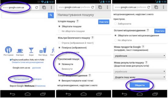 Таким образом, можно писать запросы на украинском языке прямо на экране своего мобильного телефона или планшета, что в определенных случаях намного удобнее, чем пытаться сделать то же самое на виртуальной клавиатуре. Например, при движении в трясущемся общественном транспорте намного удобнее написать нужное слово в любом месте экрана, чем пытаться попасть пальцем в маленькие буквы клавиатуры.