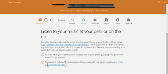 В приложении-компаньоне для смартфона, предустановленном в Windows 10, обнаружено упоминание нового сервиса Microsoft — Groove Music Pass. Указано, что этот сервис будет предоставлять возможность стриминга миллионов композиций на все устройства пользователя без прерывания на рекламу. Ссылка на Groove Music Pass в настоящее время редиректит на сайт Xbox Music — нынешнего музыкального сервиса Microsoft.