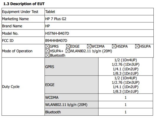Новая неанонсированная модель HP 7 Plus G2 на этой неделе была замечена в базе данных федеральной комиссии связи США (FCC). К сожалению, о новинке известно пока немного. Как сообщает ресурс, планшет будет оснащён адаптерами Bluetooth, Wi-Fi 802.11b/g/n, а также получит поддержку сетей GPRS, EDGE, WCDMA и HSPA.