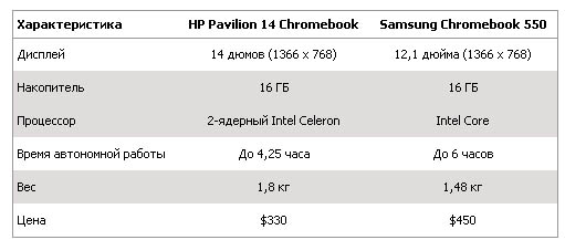 Модель Samsung Chromebook 550 выигрывает по производительности - в ней стоит процессор Intel Core - и времени автономной работы, которое составляет до 6 часов. В остальном модели имеют сопоставимые характеристики.