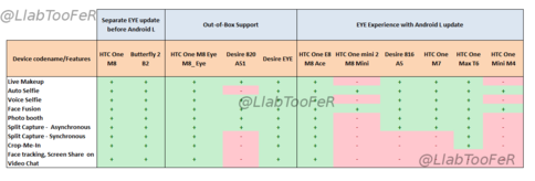 Об этом написал в личном блоге известный энтузиаст-разработчик и поклонник HTC LlabTooFeR, указав различия в EYE Experience на смартфонах тайваньского производителя. Пакет содержит девять функций, на каких-то устройствах они работают все, а на других — лишь некоторые из них.