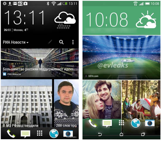 Для сравнения приводим скриншот стартового экрана HTC One (слева) и One 2 (справа).