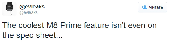 Сообщение Эвана Бласса является ответом на опубликованные вчера вероятные спецификации M8 Prime. Он не отрицает их, а это значит, что в смартфоне можно ждать Qualcomm Snapdragon 805, 2k-дисплей диагональю 5,5 дюйма, 3 ГБ памяти и улучшенную систему из двух камер на тыльной стороне.