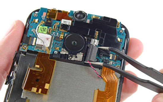 Вскрытие показало, что в смартфоне применяются модуль оперативной памяти Elpida FA164A2PM 2 GB RAM, флеш-накопитель SanDisk SDIN8DE4 32 GB NAND, контроллер экрана Synaptics S3528A, контроллер NXP 44701 NFC, приёмопередатчик Qualcomm WTR1625L RF и другие компоненты.