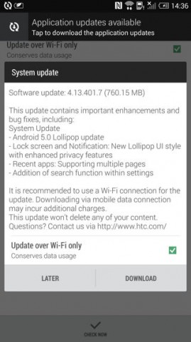 HTC One Max можно обновить до Android 5.0 "по воздуху"