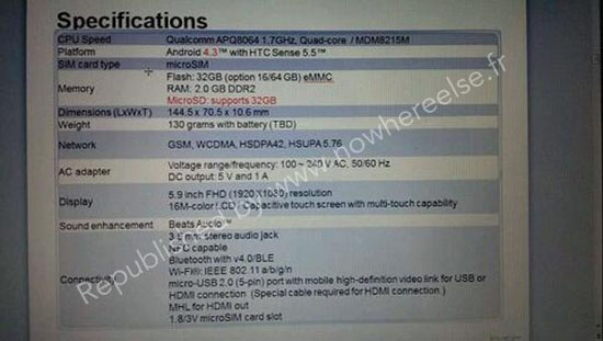 HTC One Max сертифицировали в Китае, новое подтверждение спецификаций