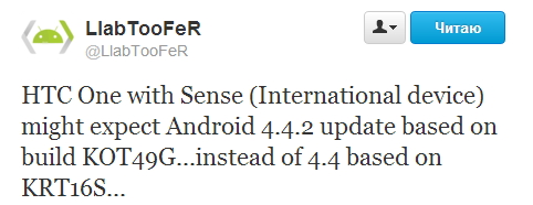 Известный знаток «внутренней кухни» HTC, энтузиаст-разработчик LlabTooFeR, ранее писал в Twitter, что HTC One Google Play Edition в скором времени получит Android 4.4.1 (KOT49E) — высокая скорость создания прошивок для этой версии смартфона обусловлена тем, что они почти полностью основаны на AOSP-коде. Тайваньцы добавляют туда минимум уникальных функций (например, Beats Audio). Однако в этот раз они не успели и теперь создают для One GE более свежую сборку — на основе Android 4.4.2, о чем вновь сообщил LlabTooFeR. Каких-то определенных сроков поступления он не озвучил.