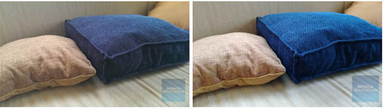 На следующей серии запечатлен диван с двумя подушками, одна из которых синего цвета. HTC One справился со снимком очень достойно, цвета правильные, у фото на удивление хорошая детализация. Детализация на снимке сделанном Lumia так же хороша, а вот синий цвет очень далек от естественно, чрезмерно ярок. Победителем тут однозначно является флагман HTC.