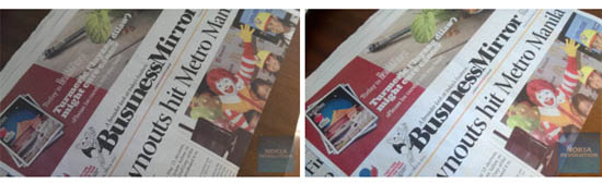 Еще один приближенный к реальным условиям тест – съемка печатного текста в макро-режиме, в данном случае газеты. Флагман HTC правильно передал цвета, при этом весь текст, даже самые маленькие буквы, прекрасно читаются. А вот фото-смартфон от Nokia на этом фоне явно проигрывает – да, текст читается, но несколько размыт, да и цветные вставки уж слишком яркие. Победитель очевиден.
