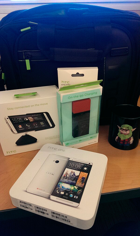 HTC, узнав о происшествии, решила не оставаться в стороне и отправила в адрес сотрудника заправки набор подарков — новый смартфон, зарядку для него, автомобильный держатель, сумку и кружку с гоблинами, которых можно наблюдать в рекламных роликах компании.