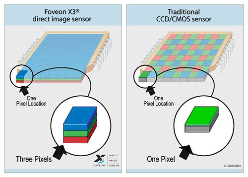 Технология якобы позволит создать более четкое, чем в случае с обычными матрицами, изображение с более точной цветопередачей. Разрешение итоговой картинки будет равно разрешению каждого из слоев матрицы (4,3 мегапикселя).