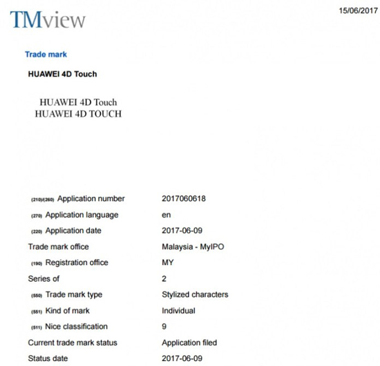 Правда, действительность показала, что 3D Touch в iPhone и эта же функция в Huawei Mate S две большие разницы, и явно не в пользу китайского исполнения функции. Но, похоже, в Huawei решили вернуться к идее усовершенствовать эту разработку. В сети появилась информация, что компания работает над новой технологией и 9 июня зарегистрировала торговую марку «Huawei 4D Touch».