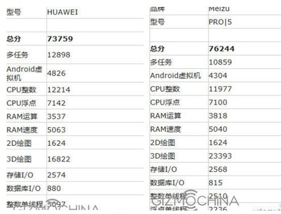 По имеющимся данным, такая начинка позволила P9 Max набрать более 73 000 баллов в AnTuTu, что немало для обладателя дисплея со столь высоким разрешением. Правда, по части 3D-графики оценка на удивление низкая, даже на фоне того же Meizu Pro 5. Таблица ниже демонстрирует сравнение этих устройств по всем результатам в тестах.