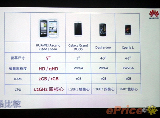 В ходе презентации на Тайване китайский производитель сравнил новинки с Samsung Galaxy Grand Duos, а также HTC Desire 500 и Sony Xperia L.