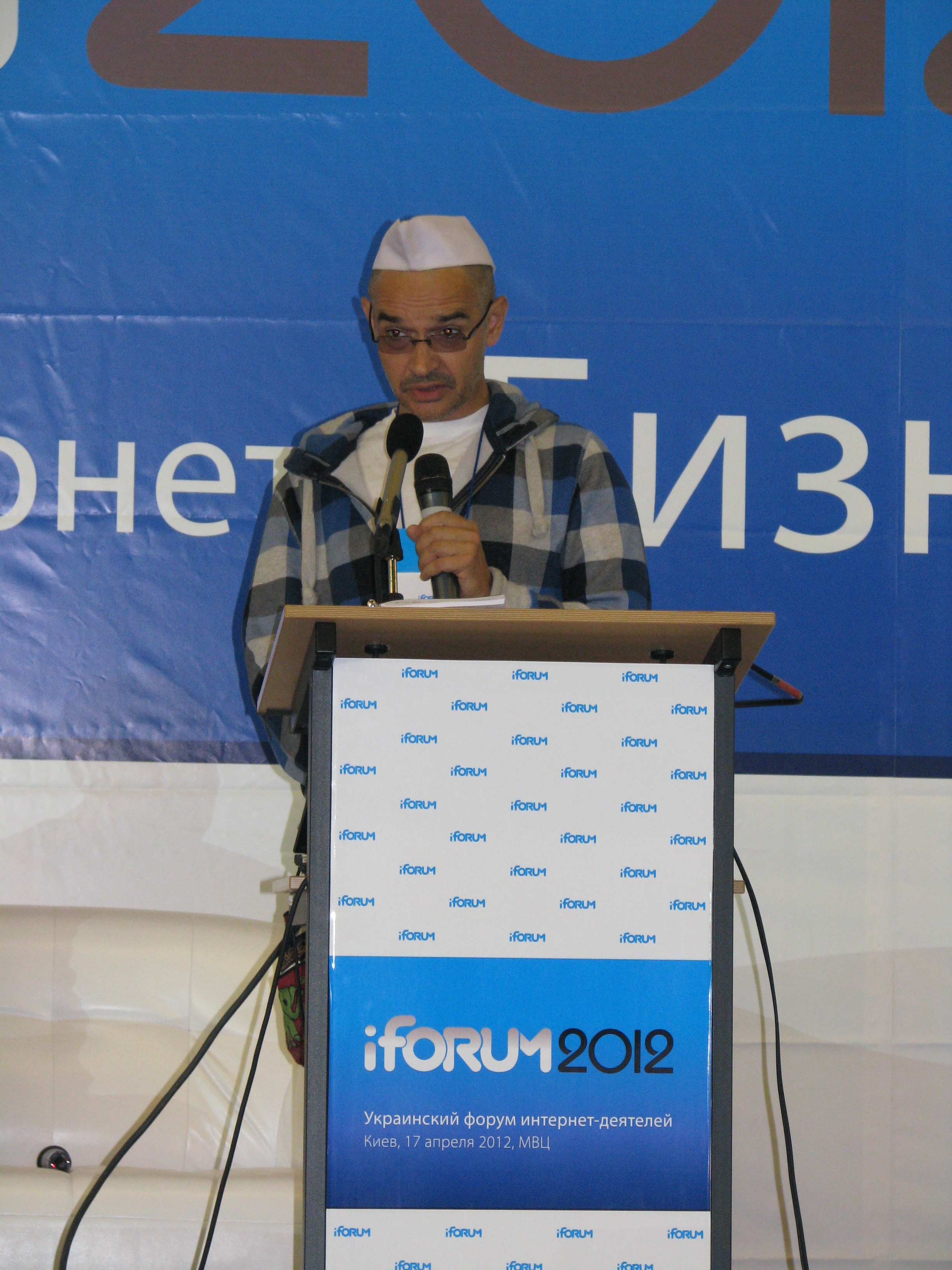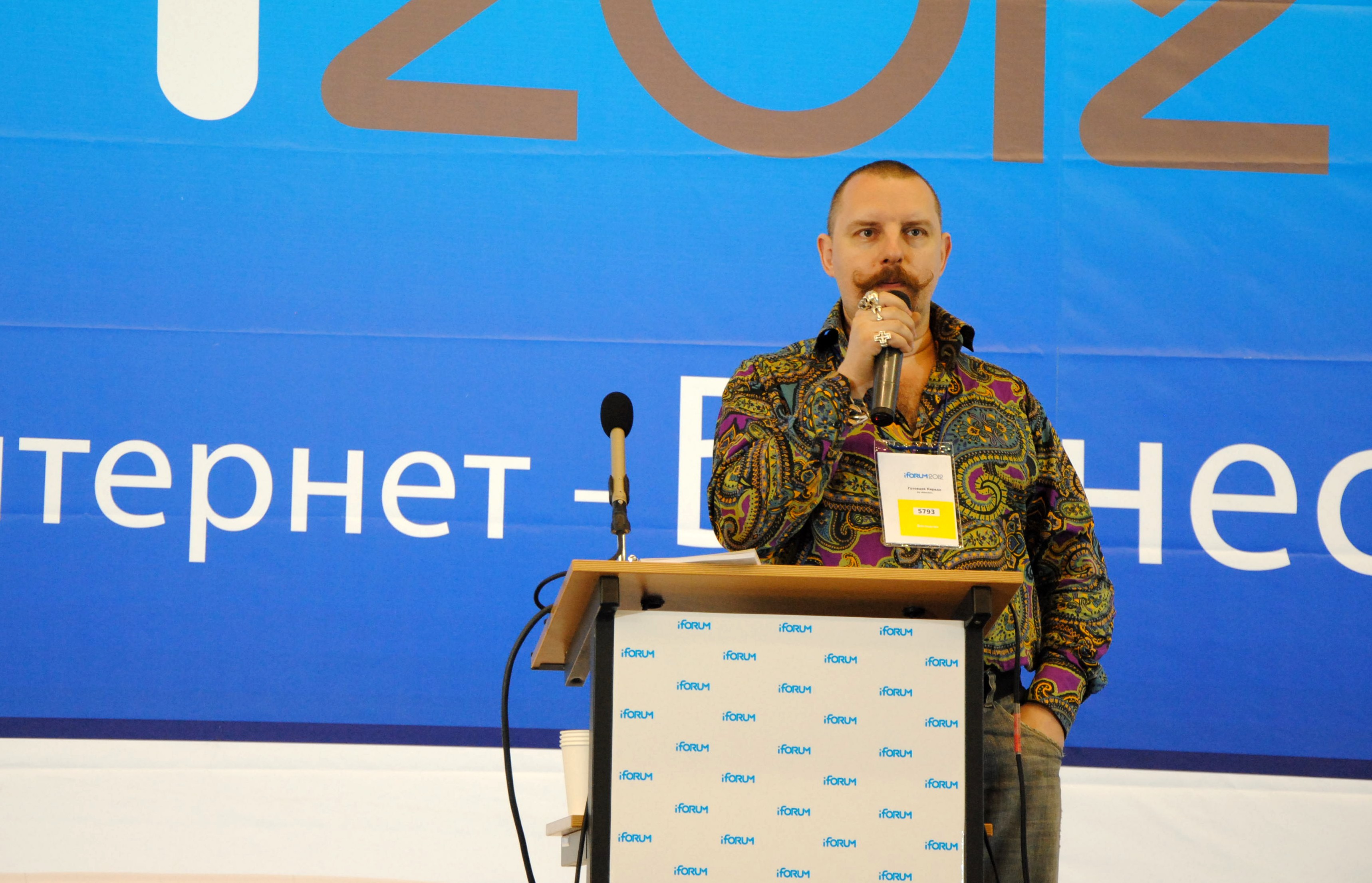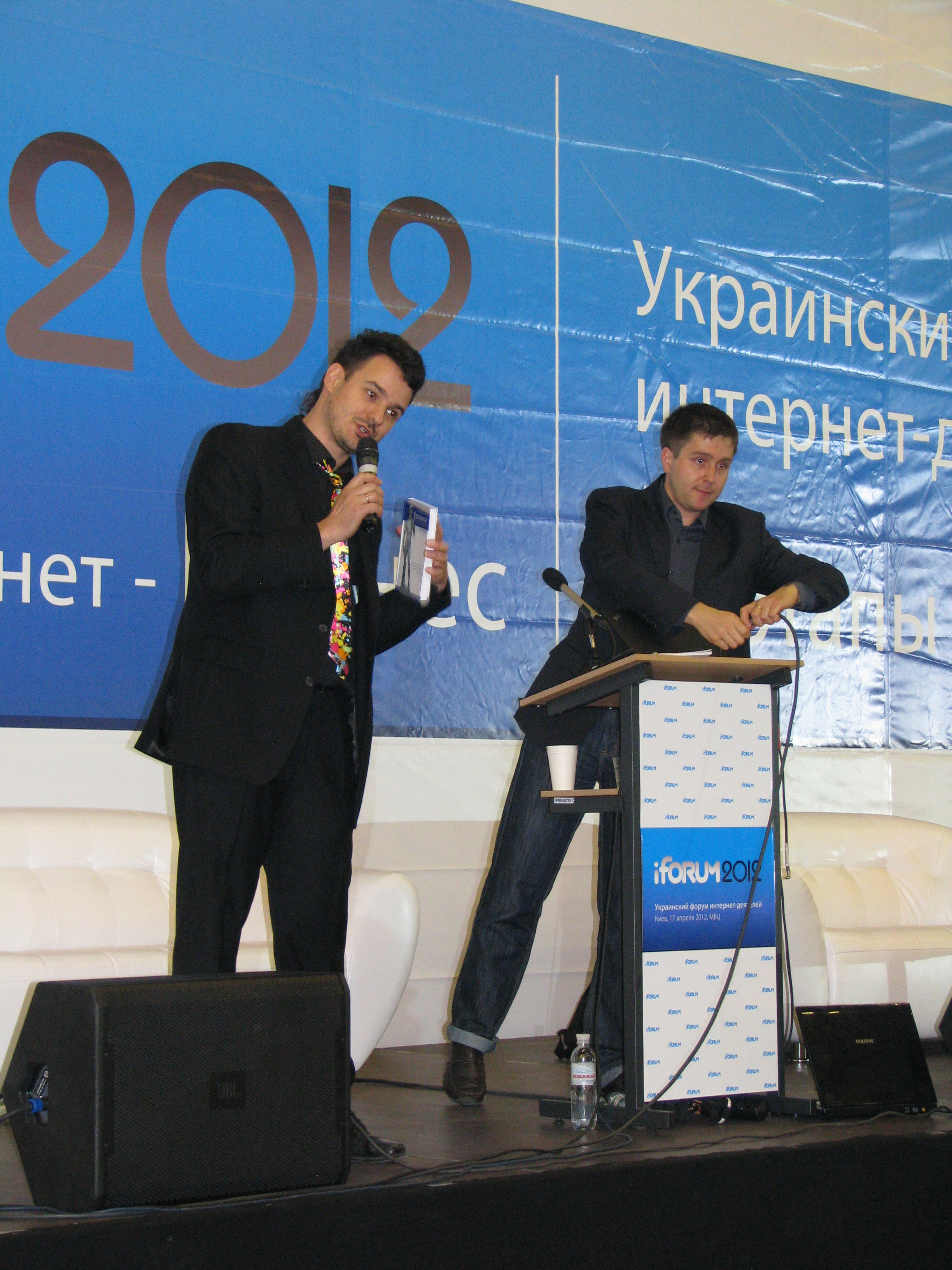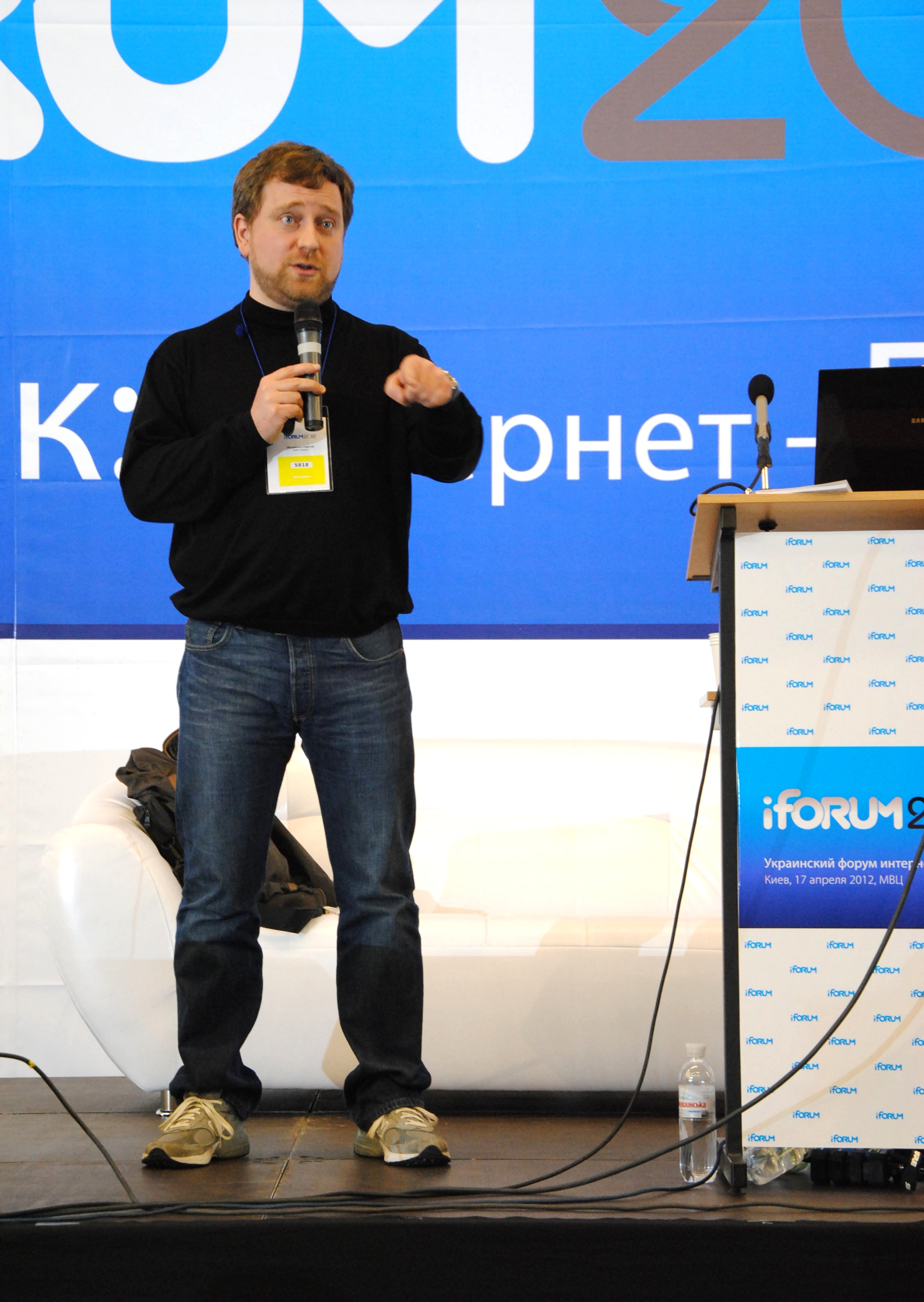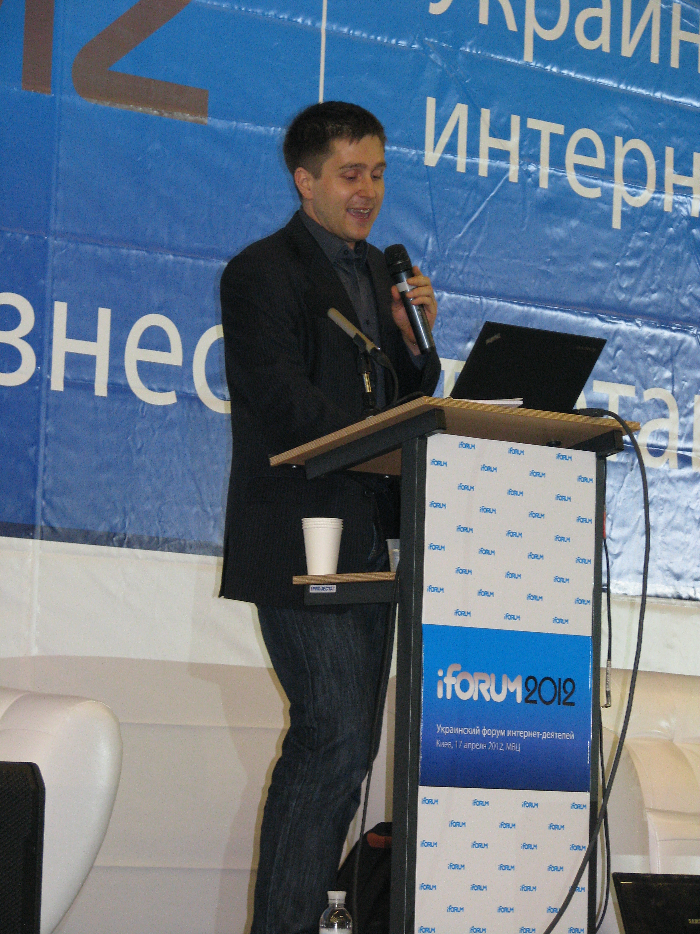 Примерно в обед на сцену вышел Виталий Гордуз. Он заменил заболевшего Бориса Ложкина. В своем докладе руководитель интернет-бизнеса УМХ рассказал о проблемах, которые стоят перед украинским медийным рынком. Он посетовал, что доля интернет-рекламы в бюджетах рекламодателей 4-5%, хотя в других странах она доходит до 15-20%. Причины нехватки денег в рекламном медийном уанете следующие: