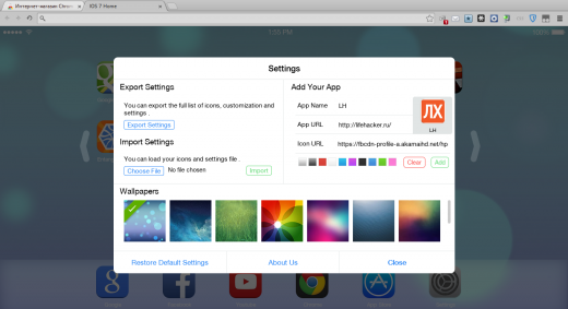 Расширение IOS 7 New Tab Page делает стартовую страницу браузера чрезвычайно похожим на экран iPad. Вы видите перед собой хорошо узнаваемое фоновое изображение, на котором расположены значки установленных у вас приложений и веб-сайтов. Вы можете перемещать значки, захватывая их курсором. В режиме редактирования они начинают знакомо покачиваться и на иконках появляется крестик для удаления. Если у вас сенсорный экран, то эффект будет еще более полным.