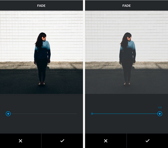 Используя фильтр Color, можно добавить оттенок на светлые или тёмные участки снимка, а при помощи Fade – сделать цвета на фотографии более мягкими. Всего будет доступно восемь цветов: оранжевый, красный, зеленый, синий, розовый, желтый, фиолетовый, голубой. Чтобы избранные фильтры всегда были под рукой, пользователь может изменить их порядок. Для этого нужно коснуться и удерживать фильтр для изменения порядка.