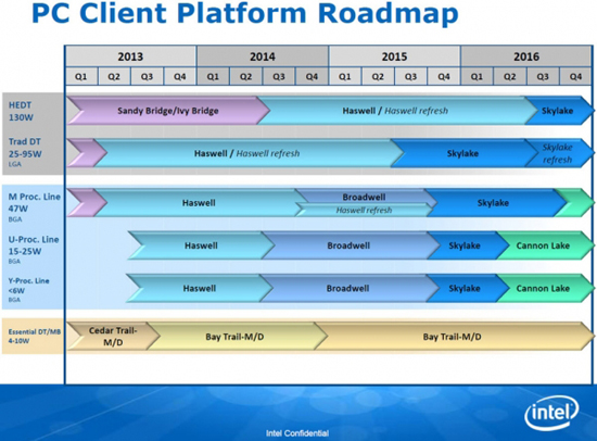В мае был опубликован слайд, предположительно из документа Intel для партнёров, согласно которому компания предполагает начать коммерческие поставки процессоров Cannonlake для мобильных устройств в середине 2016 года. Производственный цикл процессоров с FinFET-транзисторами составляет около трёх месяцев, что означает, что производство должно начаться в начале 2016.