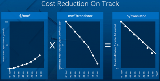 Intel пока не раскрыла каких-либо данных о своём 10-нм технологическом процессе. Единственное, что достоверно известно о 10-нм технологии изготовления микросхем Intel, это ключевые цели компании: увеличить плотность транзисторов и уменьшить стоимость каждого транзистора. Довольно очевидно, что в планах Intel – продолжение уменьшения размеров транзисторов, межблочных соединений и других составляющих микросхем, что увеличивает производительность, снижает энергопотребление и уменьшает себестоимость транзисторов. К сожалению, делать достоверные предположения о степени готовности 10-нм технологического процесса Intel на сегодняшний день невозможно, поскольку последние неофициальные сообщения противоречат друг другу.
