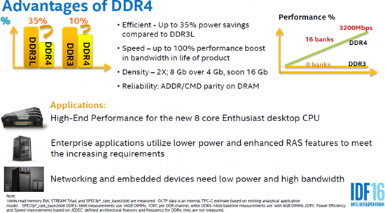 Корпорация Intel, а также крупнейшие производители оперативной памяти (dynamic random access memory, DRAM) ожидают продолжения быстрой эволюции технологии DDR4 в ближайшие годы. Помимо роста тактовых частот и скорости передачи данных, микросхемы DDR4 увеличат максимальную ёмкость до 16 Гбит уже во второй половине следующего года. Более того, модули памяти ёмкостью 16 Гбайт вскоре подешевеют до значений, приемлемых для массового рынка.