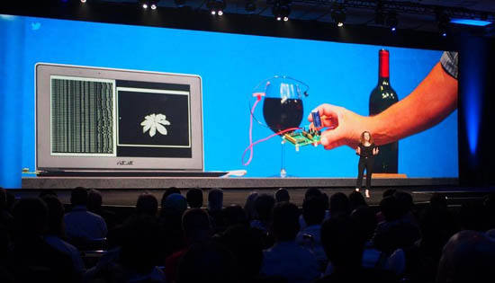 На конференции, ориентированной на разработчиков, корпорация Intel продемонстрировала необычный прототип процессора. Для работы чипу достаточно бокала с вином, откуда процессор черпает энергию с помощью пары электродов. При этом вырабатываемой мощности хватило для вывода и смены изображения на экране E-Ink.
