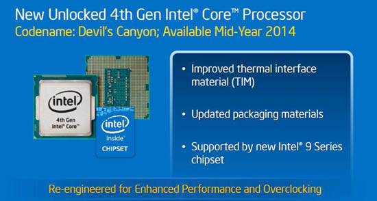 Для них в середине нынешнего года будут выпущены процессоры с кодовым именем Devil's Canyon поколения Haswell. От обычных чипов Core четвёртого поколения новые изделия будут отличаться разблокированным множителем и улучшенным термоинтерфейсом. Эта даст широкие возможности в плане разгона.