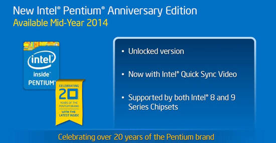 Более чем 20 лет присутствия на рынке бренда Pentium корпорация Intel намерена отметить выпуском версии Pentium Anniversary Edition, которая также сможет похвастаться разблокированным множителем.