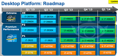 Intel выпустит чипы на базе архитектуры Ivy Bridge-E. Чипы для энтузиастов будут продаваться как Core i7. 4-ядерные процессоры будут стоить порядка $300-400, 6-ядерные — $500-600, а Extreme Edition — около $1000.