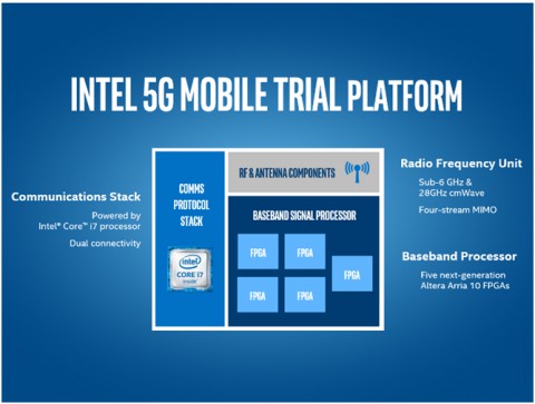 Корпорация Intel предлагает платформы и ведёт работу с отраслевыми лидерами над созданием ранних прототипов решений; всё это призвано ускорить развитие технологий связи пятого поколения и будет способствовать повышению готовности отрасли к развёртыванию 5G сетей. Платформа Intel для испытания мобильной связи 5-го поколения представляет собой высокопроизводительную платформу разработки для более оперативной интеграции и тестирования 5G-устройств и точек беспроводного доступа. В настоящее время Intel в сотрудничестве с крупнейшими в мире операторами мобильной связи разрабатывает технологии 5G, создаёт прототипы решений и проводит испытания этой новой экспериментальной платформы.