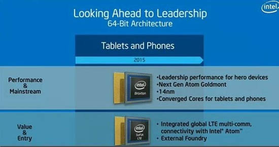 Руководители Intel признались, что компания стремиться наверстать упущенное на рынке смартфонов и планшетов, поэтому всеми силами ускоряет разработку и выход новых мобильных чипов. В частности, решения с кодовыми именами Broxton и Sofia появятся раньше, чем это было запланировано изначально. Как подтвердил Брайан Кржанич, ещё три месяца назад Broxton и Sofia в «дорожной карте» Intel отсутствовали. Агрессивные меры, которые предпринимает Intel, должны позволить ей в короткий срок увеличить поставки Atom как минимум вчетверо – так была обозначена цель на следующий год.