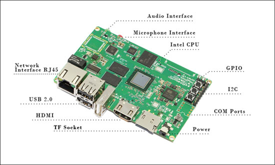 В оснащение платы входят флеш-модуль вместимостью 16 Гбайт, сетевой Ethernet-контроллер, слот для флеш-карты microSD, три порта USB 2.0 и коннектор HDMI. Обеспечивается поддержка интерфейсов COM, I2C и пр. Размеры составляют 101,9 × 64,5 мм.