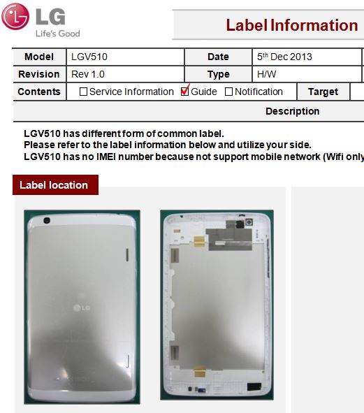 Согласно информации источника, данный V510 оснащен лишь модулем Wi-Fi, поддержка LTE-сетей отсутствует. Более того, у планшета нет брендинга, характерного для устройств линейки Nexus. Начинка LG V510 аналогична планшету LG G Pad 8.3 (модельный номер V500).