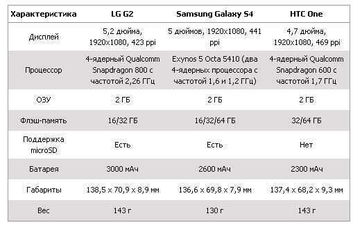 Сравнение LG G2, Samsung Galaxy S4 и Motorola Moto X