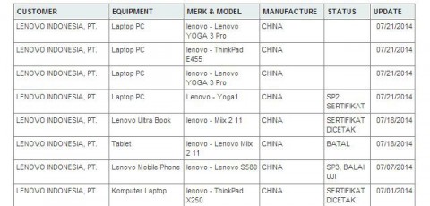 Ранее на этой неделе на сайте Федерального агенства по связи США (FCC) прошла сертификацию защитная обложка со встроенной Bluetooth-клавиатурой, предназначенная для планшетного компьютера Lenovo Yoga 2 10. Однако, помимо планшетов, под брендом Yoga компания Lenovo выпускает и полноценные ноутбуки на операционной системе Windows. Теперь стало известно, что на индонезийском аналоге FCC прошёл сертификацию ещё не анонсированный ноутбук Lenovo Yoga 3 Pro.