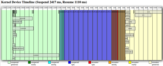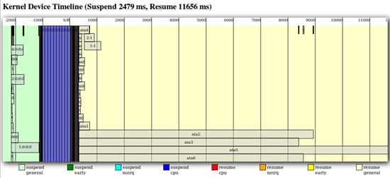Разработчики оптимизировали некоторые процедуры на уровне драйверов ATA и SCSI. Как видно на графиках, эффект достигнут за счет оптимизации асинхронного выполнения процессов. При этом повышается скорость и ухода в спящий режим, и выхода из него. Драйверы теперь более интеллектуально обрабатывают вызовы из ядра Linux, ставя их в очередь. Таким образом, система кажется восстановившейся после сна, хотя некоторые процессы все еще подгружаются с жесткого диска.